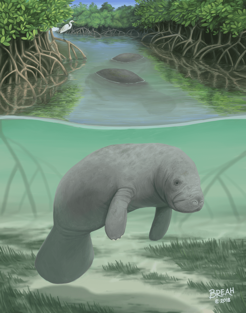 Often found in slow moving rivers, canals, estuaries and coastal waters, they are the only herbivorous animal to live their entire lives in water. These rather graceful creatures are at home in both fresh and salt water but most commonly found in the brackish waters of inter-coastal waterways – though they do need frequent access to warmer fresh water found in inland rivers.