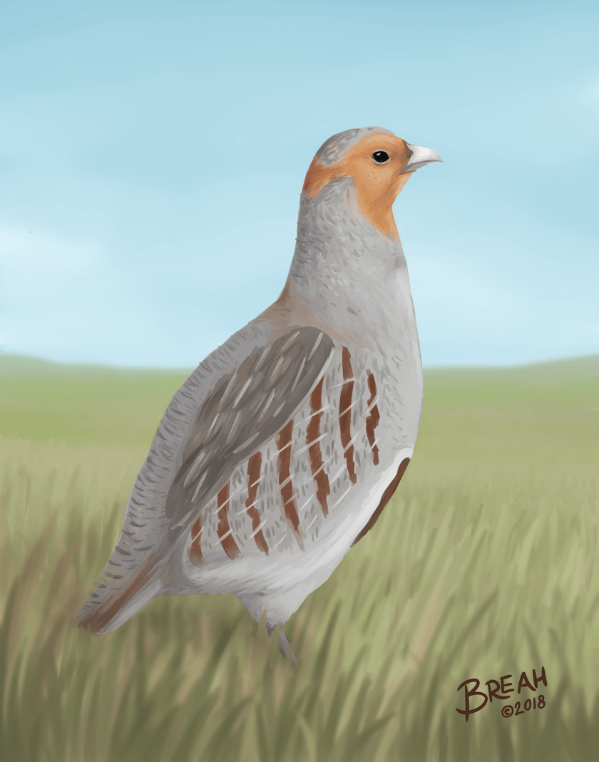 The Gray, or Hungarian, Partridge is one of many species of partridge. This game bird native to Europe was introduced to North America in the early 1900s. They weigh around 13-17 oz (370-480 grams) with a wingspan of 20-22 inches (50-55 cm).