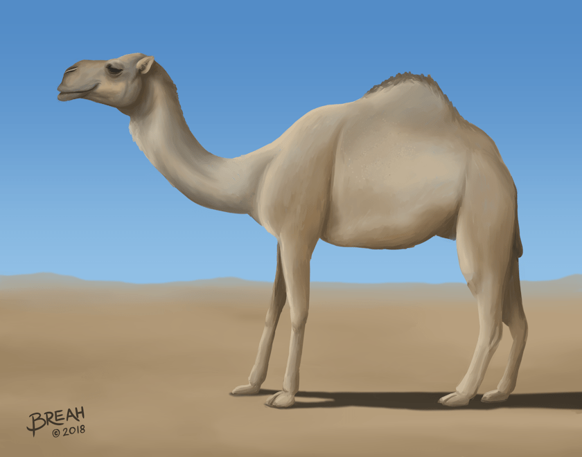 Dromedary camels are said to have been domesticated over 3,000 years ago. To this day, people depend on them for transportation across the harsh and arid desert, and can easily carry an extra 200 lbs (90 kg).