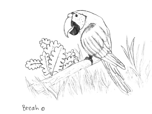 This black and white sketch of a Scarlet Macaw comes from Breah’s collection of hand-drawn animal illustrations.