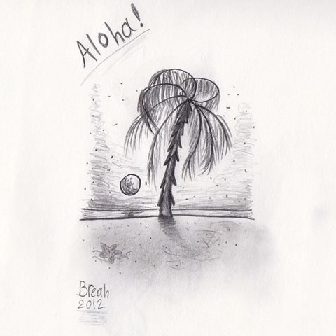 Breah sketched this wonderful image of a palm tree on a moonlit beach. Aloha!